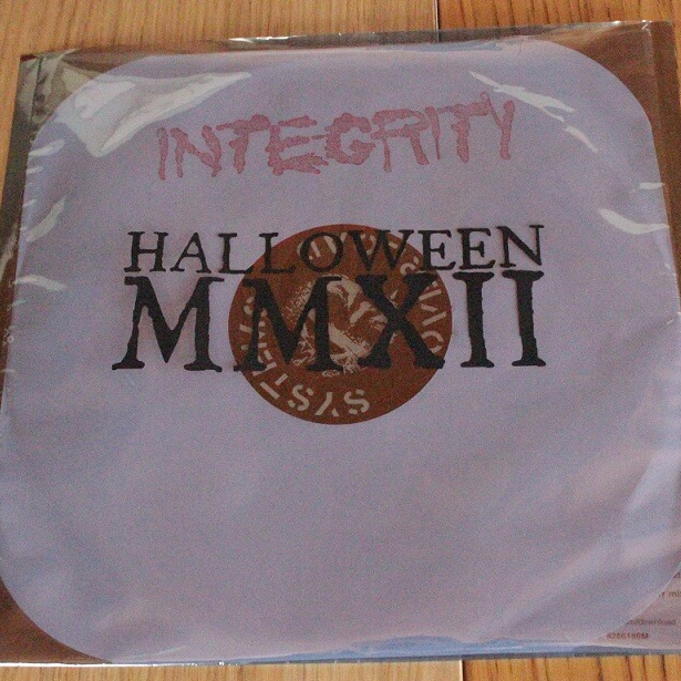 All this madness came into the highly anticipated Halloween package that Organized Crime Records throws every year around Halloween, ever so mysterious many awaited their faith to grasp a glimpse at the diabolical schemes that would unravel from this godforsaken package. Inside this box of Pandora a bloodred vinyl record bearing the Integrity skull greets us through some mylar packaging embossed with the title and year of this joyful event; Halloween MMXII.